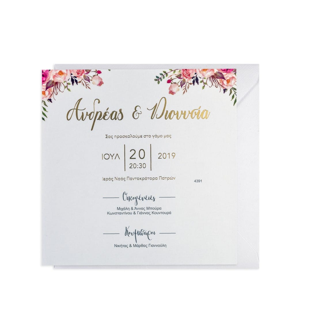 Προσκλητήριο γάμου με φάκελο.
